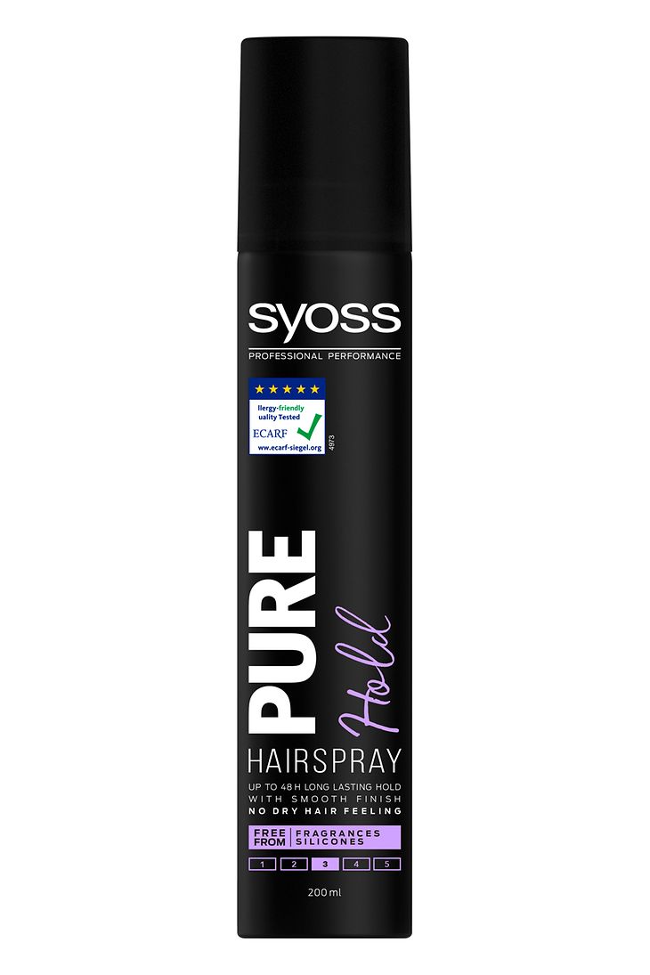 Tak čerstvé, tak čisté! Dlhotrvajúce výsledky bez silikónov - nový rad styling SYOSS PURE je tu! S pomocou týchto troch produktov môžete v pohodlí domova dosiahnuť krásny, prirodzene vyzerajúci štýl. SYOSS PURE lak na vlasy bez obsahu parfumov a SYOSS PURE objemová pena bez obsahu silikónov zaručujú, že vaše vlasy budú vyzerať ako keby ste práve odišli zo salónu. SYOSS PURE suchý šampón poskytuje vlasom extra dávku sviežosti.