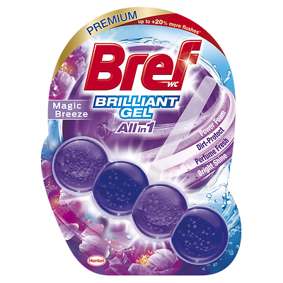Nové prémiové WC bloky Bref Brilliant Gel sú k dispozícií v obchodoch vo veľkostiach Single / Duo / Trio. Odporúčaná cena za single prevedenie je 2,49 €.
