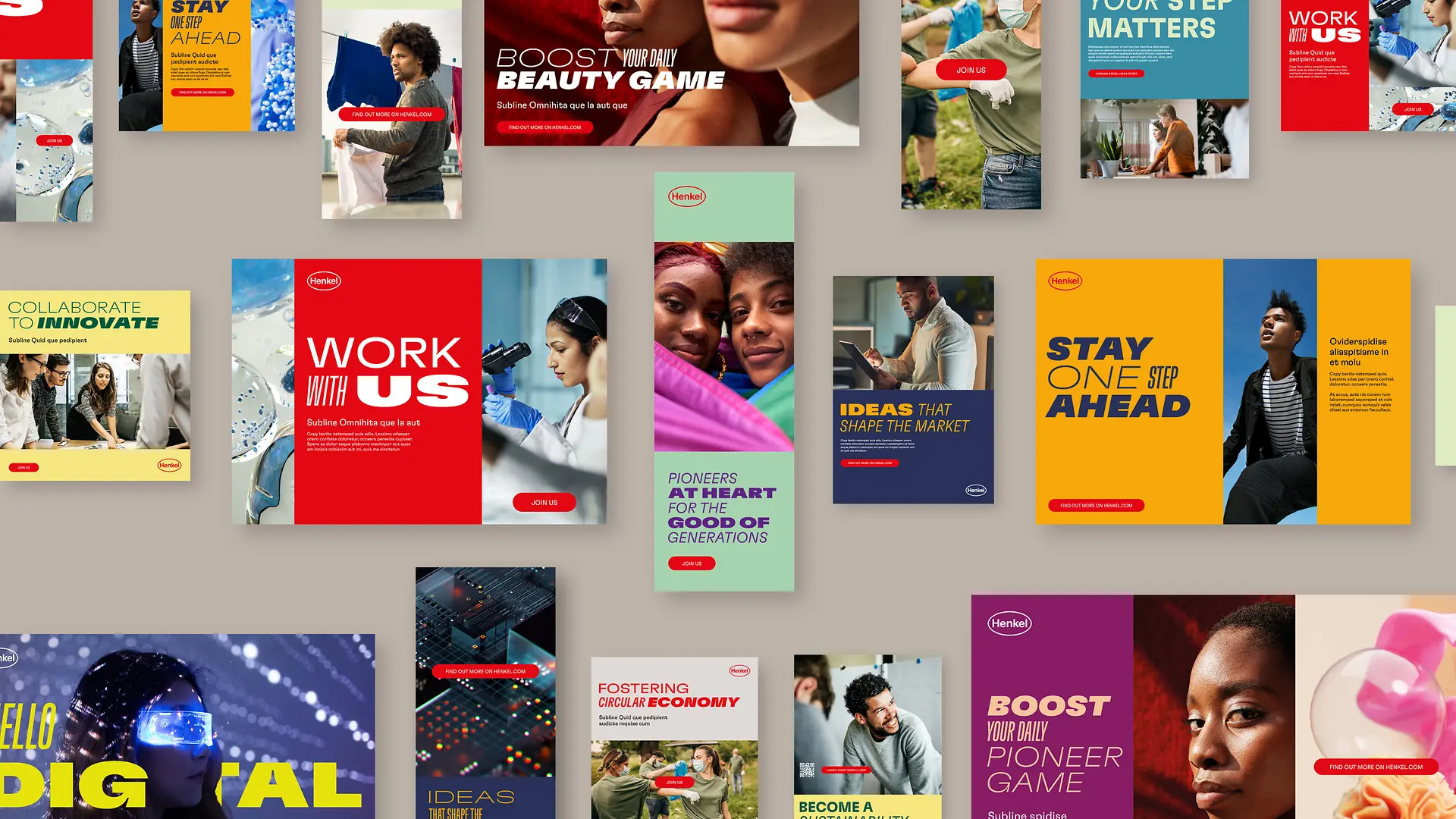Nový dizajn značky Henkel v sebe spája flexibilitu, rozmanitosť a dynamiku s jednoduchosťou a zrozumiteľnosťou. Možno ho flexibilne použiť pri akejkoľvek príležitosti od digitálnej prezentácie cez tlačové materiály až po eventy v súlade s požiadavkami rôznych organizačných jednotiek a cieľových skupín. Nová identita modernizuje značku bez toho, aby stratila to, čo ju robí ľahko rozpoznateľnou: ikonické logo Henkel, ktoré je už viac než 100 rokov symbolom kvality spoločnosti Henkel, a červeno-bielu farebnosť, ktorá je základom jej dizajnu. Nové farebné kombinácie zároveň prinášajú väčšie možnosti a dynamiku. Emocionálny a progresívny vizuálny jazyk a jedinečný, variabilný font písma (Henkel GT Flexa) obohacujú dizajn značky o živosť a expresívnosť.