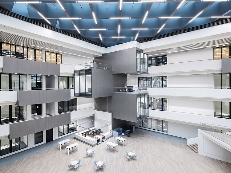 The heart of the building is a large light-flooded atrium including a coffee bar, which promotes the exchange of ideas between employees and provides space for events with partners, suppliers, customers, universities and start-ups. The ICD is the most sustainable building at the company's site in Düsseldorf. It is designed to be resource-efficient, has a rainwater collection system, highly efficient refrigeration technology and meets the highest building insulation requirements.